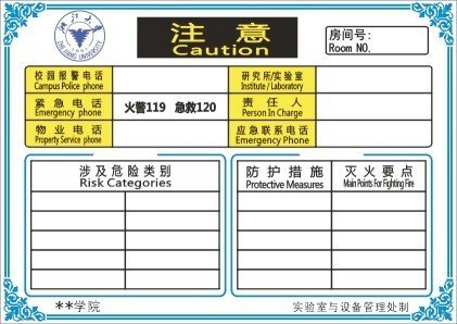 2. 保证实验室观察窗的可视性,门口需张贴安全信息牌,并及时更新相关信息。
